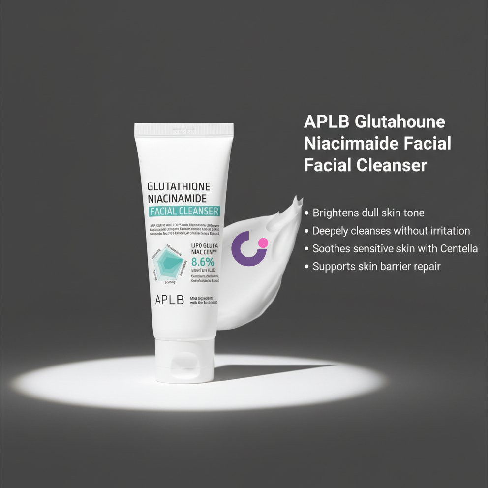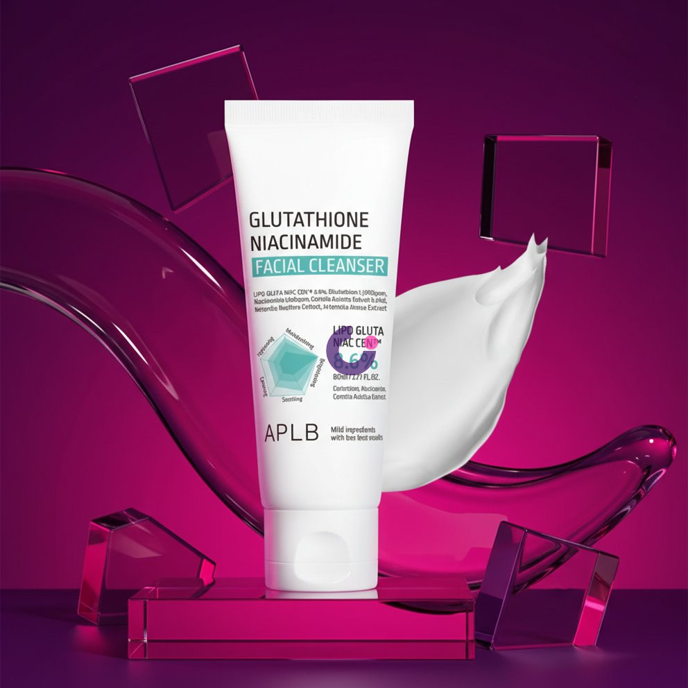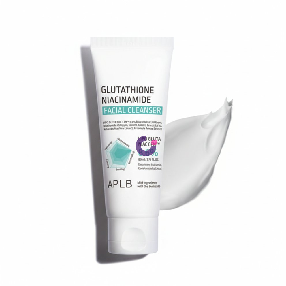 The APLB Glutathione Niacinamide Facial Cleanser features the innovative LIPO GLUTA NIAC CEN 8.6% complex, combining the brightening power of 1,000ppm Glutathione and Niacinamide with the soothing properties of 8.4% Centella Asiatica Extract. This advanced formulation is designed to remove impurities and excess sebum while revitalizing the skin's appearance. Enriched with Nelumbo Nucifera and Artemisia Annua extracts, it provides a calming effect that leaves the face feeling fresh, hydrated, and radiant after every wash. Its mild ingredients ensure maximum results without compromising the skin's natural protective barrier.