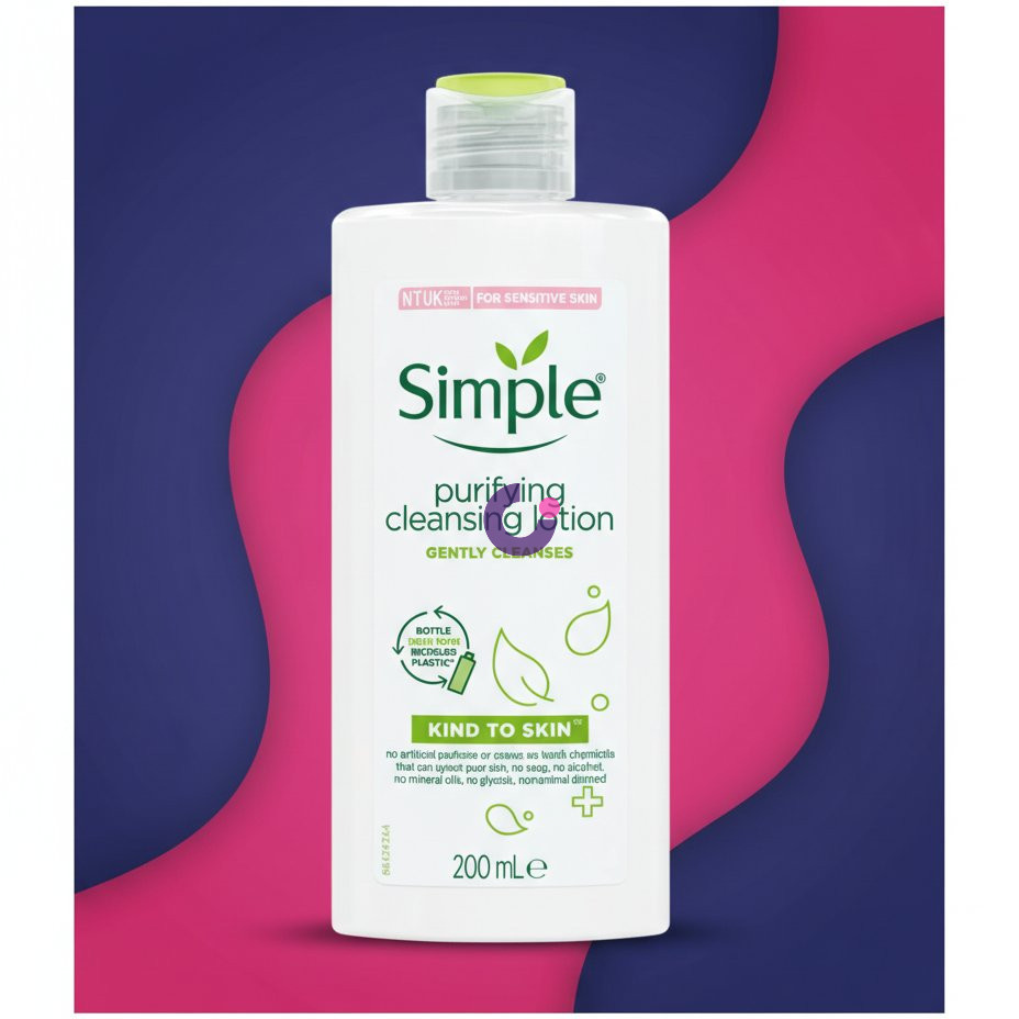 Choose Simple Purifying Cleansing Lotion for a truly gentle and effective cleansing experience that prioritizes your skin's health. Unlike many cleansers, its "Kind to Skin" formula is free from artificial perfumes, colours, harsh chemicals, soap, alcohol, and mineral oils, making it the perfect choice for even the most reactive skin types. It not only cleanses thoroughly but also nurtures, leaving your complexion soft, balanced, and refreshingly clean without any irritation. Opt for Simple for a trusted, dermatologically tested solution that cares for your skin, day after day.