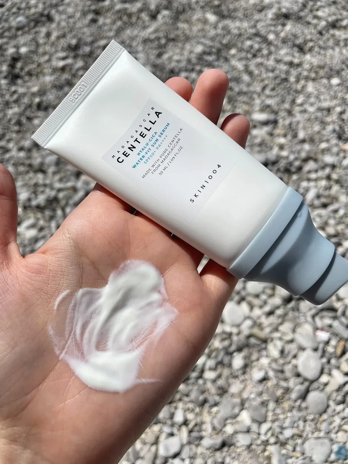 The SKIN1004 Madagascar Centella Hyalu-Cica Water-Fit Sun Serum SPF50+ PA++++ is a non-nano chemical sunscreen that blocks UV rays, while simultaneously hydrating the skin. Formulated with a golden ration of Hyaluronic Acid and Centella Asiatica Extract to soothes and replenishes hydration to dehydrated, dry and sensitive skin. The serum-like texture glides on during application without leaving any white cast.