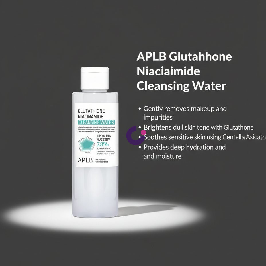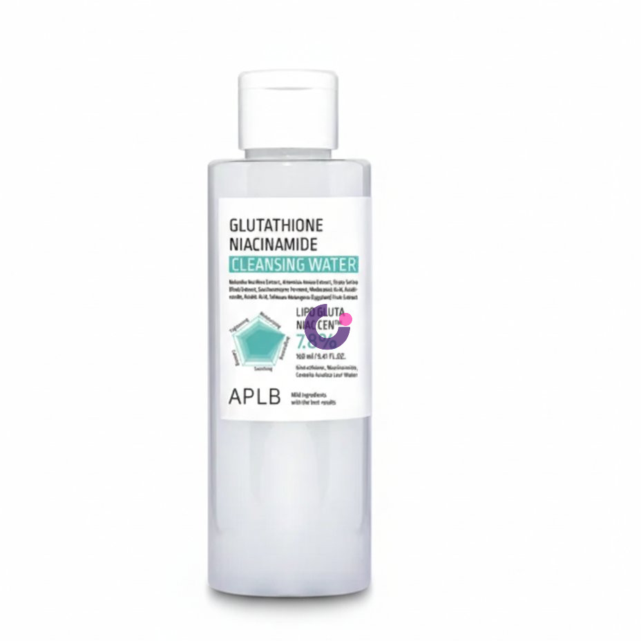 The APLB Glutathione Niacinamide Cleansing Water features the advanced Lipo Gluta Niac Cen™ 7.8% complex to revitalize your complexion while cleansing. Infused with Centella Asiatica leaf water and a blend of botanical extracts like Mugwort and Rice, it calms irritation and boosts luminosity. This micellar-style water effectively lifts away dirt, sebum, and makeup without stripping essential moisture, leaving your skin refreshed, balanced, and ready for the next steps in your regimen.