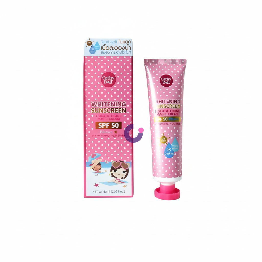 Choose Cathy Doll Whitening Sunscreen L-Glutathione Magic Cream SPF 50 PA+++ for a multifaceted approach to skincare that goes beyond basic sun protection. Unlike ordinary sunscreens, it uniquely combines very high SPF 50 PA+++ defense with the powerful skin-brightening effects of L-Glutathione, actively working to achieve a whiter, more radiant complexion. Its 'magic cream' formula ensures a lightweight, non-greasy application that even provides a refreshing cooling sensation, making it a joy to use daily. It's the perfect choice for those seeking comprehensive sun protection that simultaneously improves skin tone and texture, all from a trusted brand committed to innovative beauty solutions.