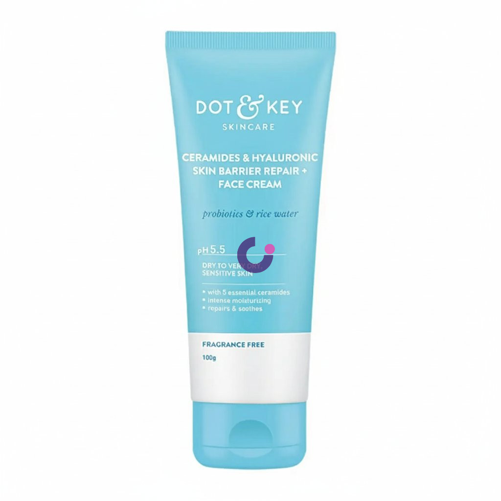 Discover the ultimate solution for dry, very dry, and sensitive skin with the Dot & Key Ceramides & Hyaluronic Skin Barrier Repair + Face Cream. This advanced formulation is meticulously crafted with 5 essential ceramides, hyaluronic acid, probiotics, and rice water to deeply nourish, repair, and strengthen your skin's natural protective barrier. Its pH 5.5 balance ensures optimal skin health, reducing irritation and promoting a smooth, supple complexion. Experience profound hydration and lasting comfort with every application.This rich, yet non-greasy face cream offers intense moisturization without clogging pores, making it ideal for compromised skin barriers. The powerful combination of ceramides helps to lock in moisture and protect against environmental stressors, while hyaluronic acid plumps the skin with vital hydration. Probiotics and rice water work synergistically to soothe sensitivity, balance the skin's microbiome, and enhance its natural resilience, revealing healthier, more radiant skin.