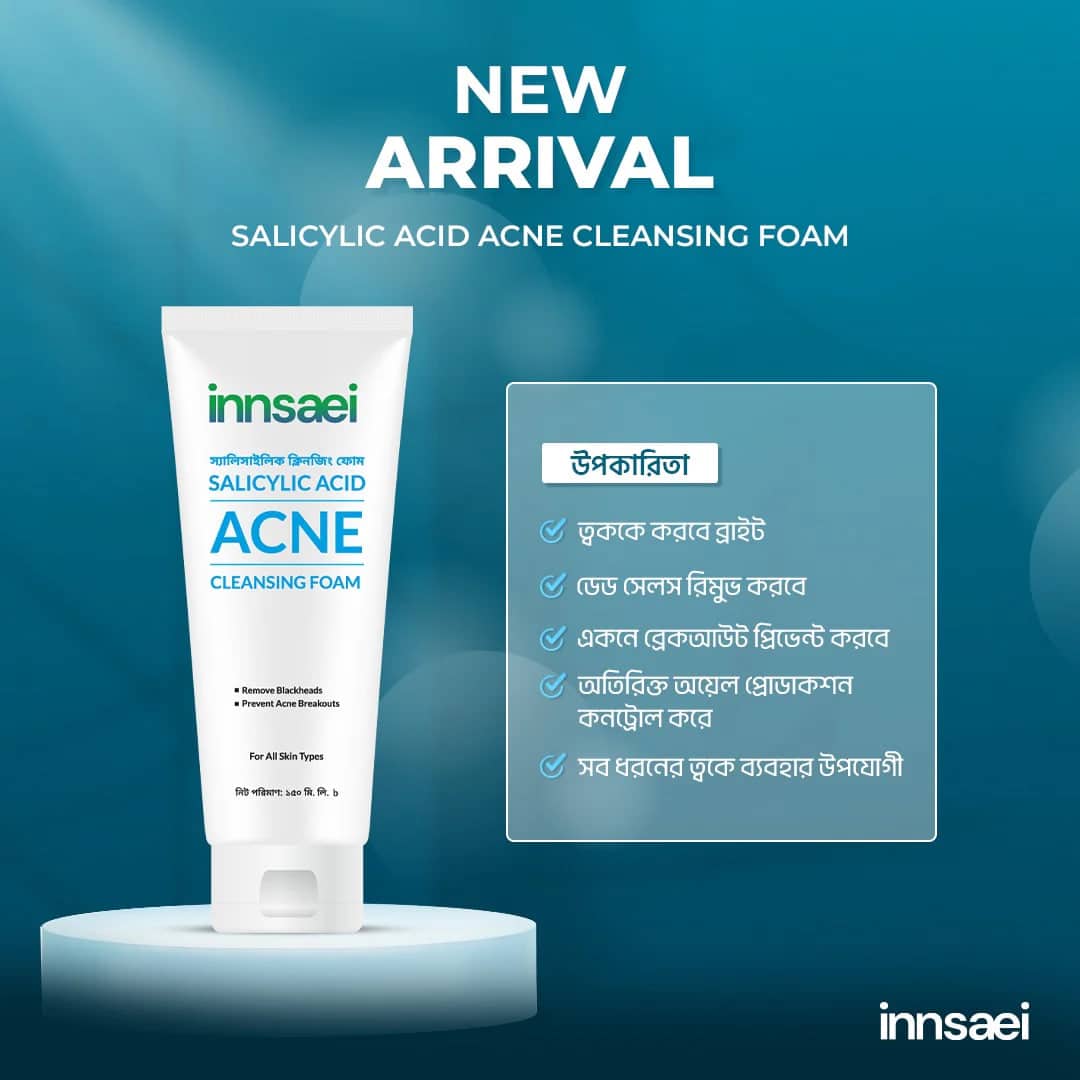 Innsaei Salicylic Acid Acne Solution Cleansing Foam gently cleanses pores, removes excess oil, and helps reduce acne breakouts while keeping skin fresh and smooth.