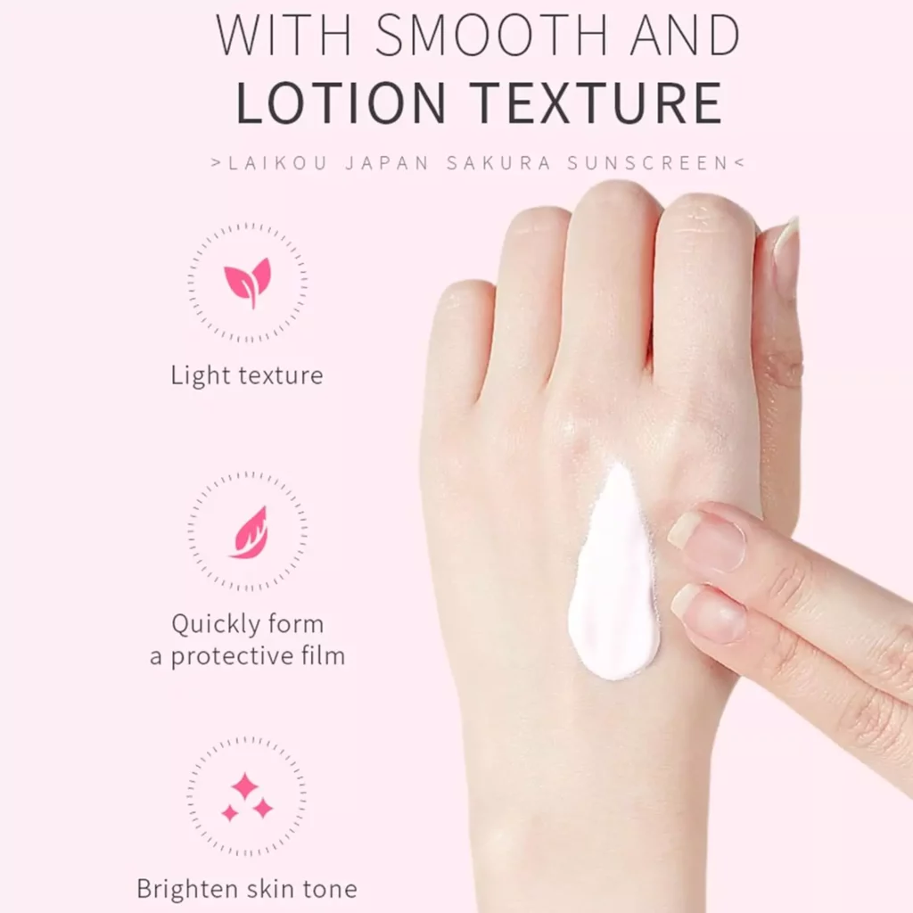 Make LAIKOU Japan Sakura Sunscreen SPF 50 PA+++ your everyday shield against the sun and pollution for glowing, healthy skin.