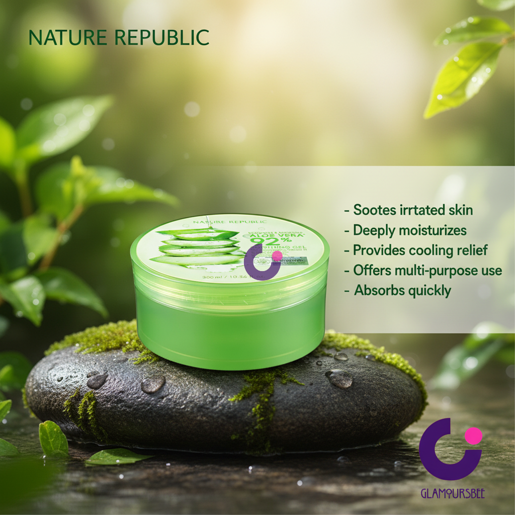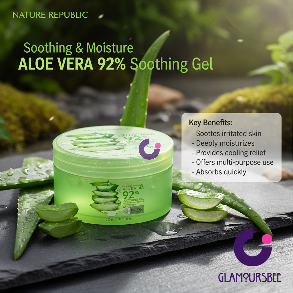 Experience the ultimate in natural skincare with Nature Republic's Soothing & Moisture Aloe Vera 92% Soothing Gel. Formulated with a remarkable 92% concentration of natural aloe vera extract, this gel is a powerhouse of hydration and soothing relief. Its lightweight, non-greasy texture absorbs quickly, delivering immediate moisture and a refreshing sensation without any sticky residue, making it ideal for daily use.