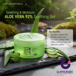 Choose Nature Republic Soothing & Moisture Aloe Vera 92% Soothing Gel for its exceptional purity and versatility. With a remarkable 92% concentration of natural aloe vera, this gel offers unparalleled soothing, hydrating, and cooling benefits, distinguishing it from ordinary moisturizers. Its multi-purpose nature means you're investing in a single product that can revitalize your face, body, and even hair, simplifying your skincare routine. As a vegan-certified product, it aligns with ethical and conscious living, offering a natural solution that cares for your skin and the planet. Embrace the power of nature for visibly healthier, happier skin.