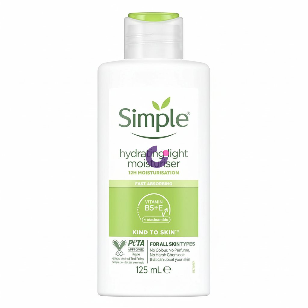 Simple Kind to Skin Hydrating Light Moisturiser is your everyday essential for healthy-looking skin. This advanced formula offers long-lasting, 12-hour hydration without feeling heavy or greasy. Its unique blend of Vitamin B5, Vitamin E, and Niacinamide works to nourish and strengthen your skin's natural barrier, promoting a radiant and balanced complexion. The fast-absorbing texture ensures immediate comfort, making it an ideal base for makeup or a refreshing boost throughout the day.Committed to kindness, Simple's moisturiser upholds its "Kind to Skin" philosophy. It contains no artificial colours, harsh perfumes, or aggressive chemicals that can upset your skin. Dermatologically tested and PETA approved vegan, it's a conscientious choice for those seeking effective yet gentle skincare. Experience the purity and performance that comes with a formulation designed to respect your skin's natural balance.