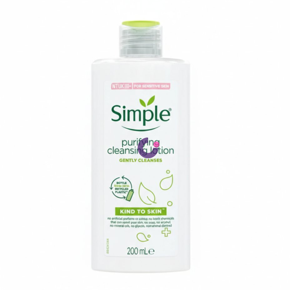 Choose Simple Purifying Cleansing Lotion for a truly gentle and effective cleansing experience that prioritizes your skin's health. Unlike many cleansers, its "Kind to Skin" formula is free from artificial perfumes, colours, harsh chemicals, soap, alcohol, and mineral oils, making it the perfect choice for even the most reactive skin types. It not only cleanses thoroughly but also nurtures, leaving your complexion soft, balanced, and refreshingly clean without any irritation. Opt for Simple for a trusted, dermatologically tested solution that cares for your skin, day after day.