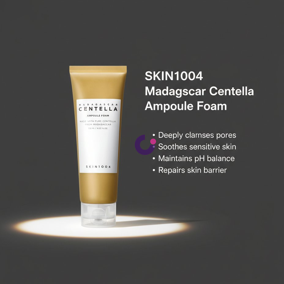 The SKIN1004 Madagascar Centella Ampoule Foam is an ultra-gentle, pH-balanced cleanser formulated with 33% Centella Asiatica Extract sourced from the pristine landscapes of Madagascar. This rich, creamy cleanser transforms into a dense foam that effectively lifts away dirt, excess oil, and environmental pollutants without compromising the skin's natural moisture barrier. Enriched with natural surfactants derived from coconut, it ensures a non-stripping experience, leaving the skin feeling soft, calm, and refreshed. Ideal for those seeking a thorough yet soothing cleanse, it helps to mitigate redness and prep the skin for the next steps in your beauty ritual.