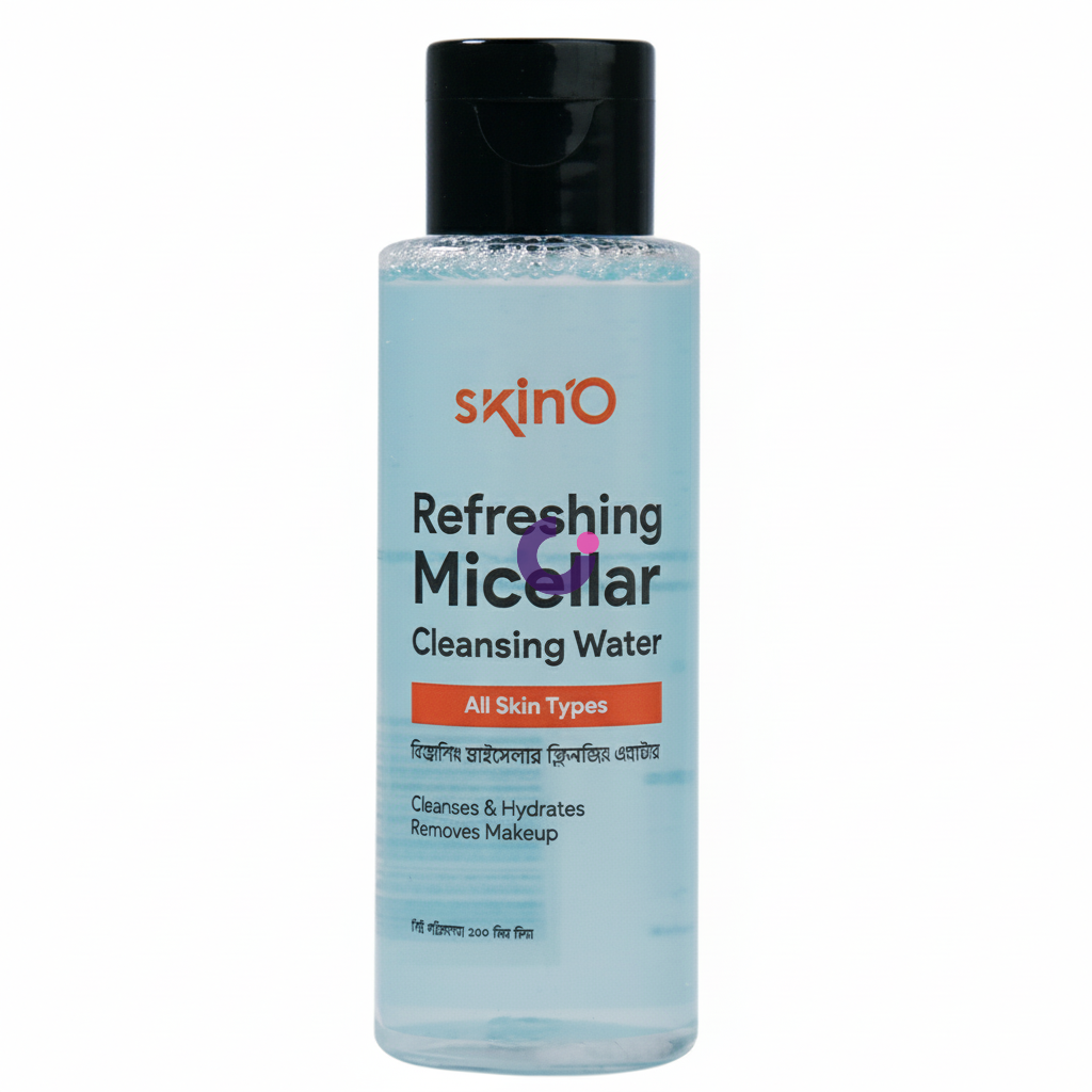 The skinO Refreshing Micellar Cleansing Water is your ultimate skincare essential for a quick, yet thorough, cleanse. Powered by advanced micellar technology, microscopic micelles attract and lift away dirt, oil, and makeup from the skin's surface like magnets, without harsh rubbing or irritation. This gentle formula ensures your skin is purified and free from impurities, providing a clean canvas for your skincare routine.Beyond its exceptional cleansing capabilities, this micellar water also delivers a boost of hydration, leaving your skin feeling supple and refreshed, never dry or stripped. Suitable for all skin types, including sensitive skin, it helps maintain the skin's natural balance while offering a soothing sensation. Simplify your daily routine with this effective, no-rinse solution for a beautifully clean and hydrated complexion.