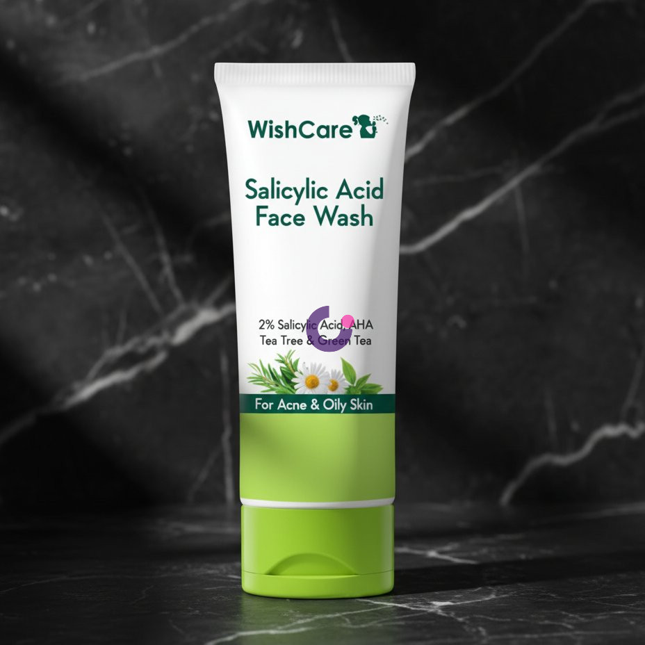 Choose WishCare Salicylic Acid Face Wash for a comprehensive solution to acne and oily skin. Unlike ordinary cleansers, this powerful formula combines clinically proven 2% Salicylic Acid and AHA for effective exfoliation and pore purification, with the calming and antioxidant benefits of Tea Tree and Green Tea. It's designed not just to treat existing issues but also to prevent future breakouts, ensuring a consistently clear, smooth, and balanced complexion without over-drying your skin. Invest in clear, confident skin with WishCare.